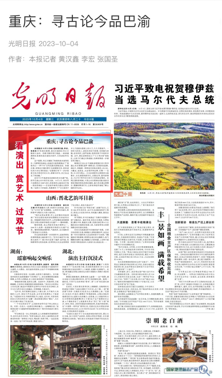 10月4日,《光明日报》头版刊发《重庆:寻古论今品巴渝》一文。